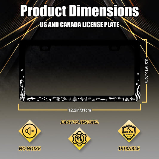 Sea Turtle License Plate Frame Cute Fish Animal Turtles License Plate Holder for Personalized Ocean Animals Car Decorative Stainless Steel Funny License Plate Turtles Auto Part 12.2" x 6.2"