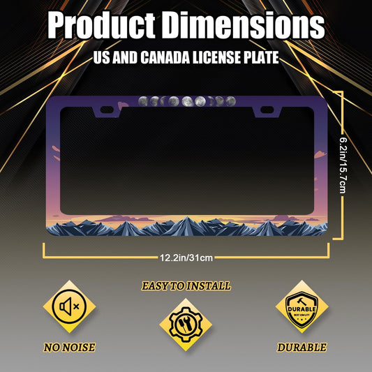 Moon Phase License Plate Frame Mountain Night Stars License Plate Holder Front and Rear Car Tags Stainless Steel Auto Parts Funny License Plate Decoration with Screws Men Women 12.2"x 6.2"