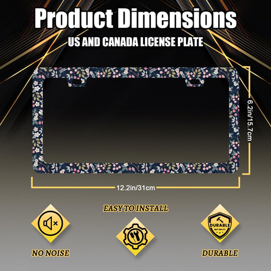 Blue Floral Flowers License Plate Frame Beautiful Flower License Plate Holder for Personalise Women Car Decorative Stainless Steel Colorful License Plate Auto Parts with Screws 12.2" x 6.2"