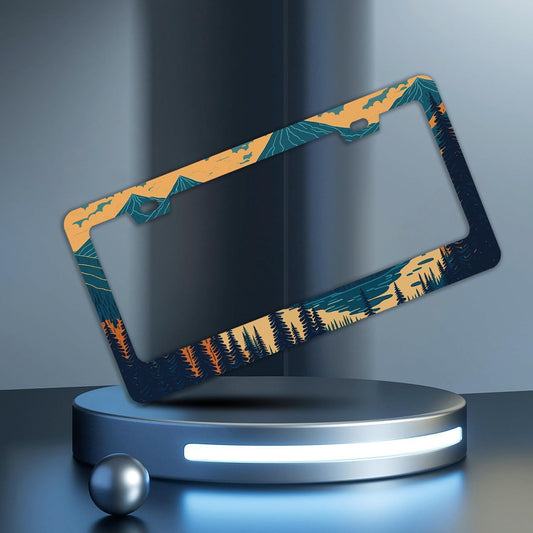 Camping License Plate Frame Mountains License Plate Holder Forest for Car Decorative Parts Stainless Stee License Plate for Standard Us Canada Funny License Plate Frames 12x6 Inch