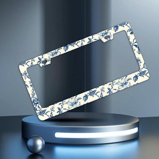 Blue White Porcelain Pattern License Plate Frame Chinoiserie License Plate Frames Funny for Car Decorative Parts Stainless Stee License Plate for Standard Us Canada 12x6 Inch