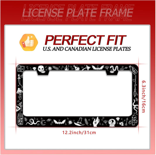 Witch License Plate Frame Gothic Magical License Plate Frames for Car Decorative Parts Stainless Stee License Plate for Standard Us Canada Funny License Plate Holder 12x6 Inch