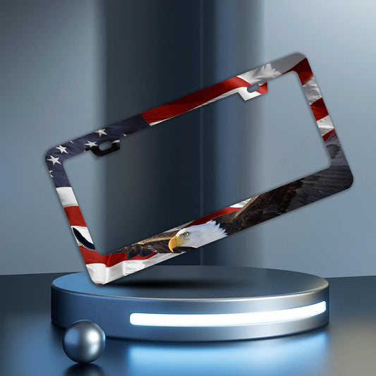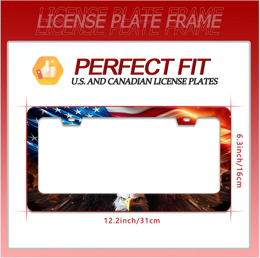 American Flag Bald Eagle License Plate Frame Patriotic License Plate Frames for Car Decorative Parts Stainless Stee License Plate for Standard Us Canada Funny License Plate Holder 12x6 Inch Unisex