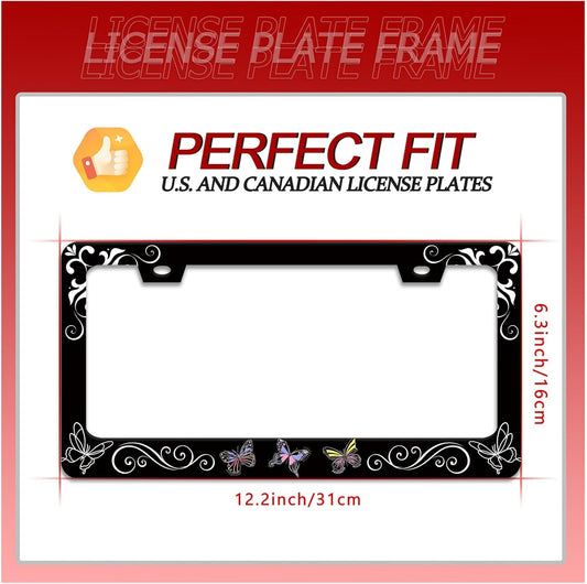 Butterfly License Plate Frame Butterflies Floral License Plate Frames for Car Decorative Parts Stainless Stee License Plate for Standard Us Canada Funny License Plate Holder 12x6 Inch