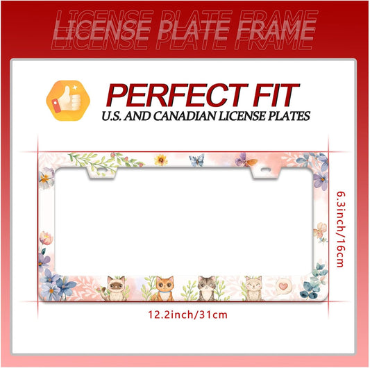 Cat License Plate Frame Beautiful Butterflies Flowers License Plate Holder Funny Personalise Car Stainless Stee Decorative Parts for Standard Us Canada Vehicles 12x6 Inch for Women Men