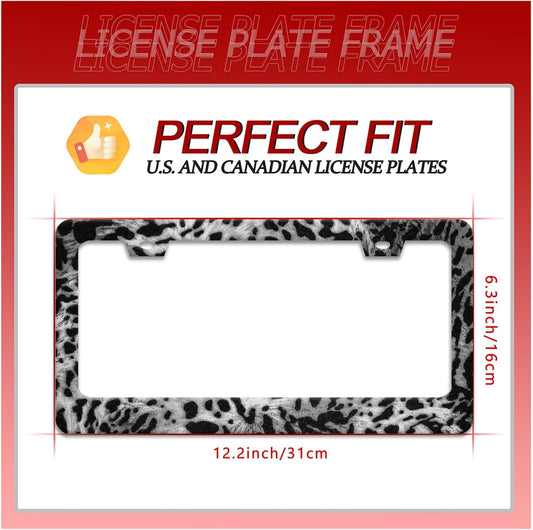 Beautiful Leopard Print License Plate Frame Cheetah Print Texture License Plate Holder for Car Decorative Parts Stainless Stee License Plate Frames for Standard Us Canada Funny 12x6 Inch