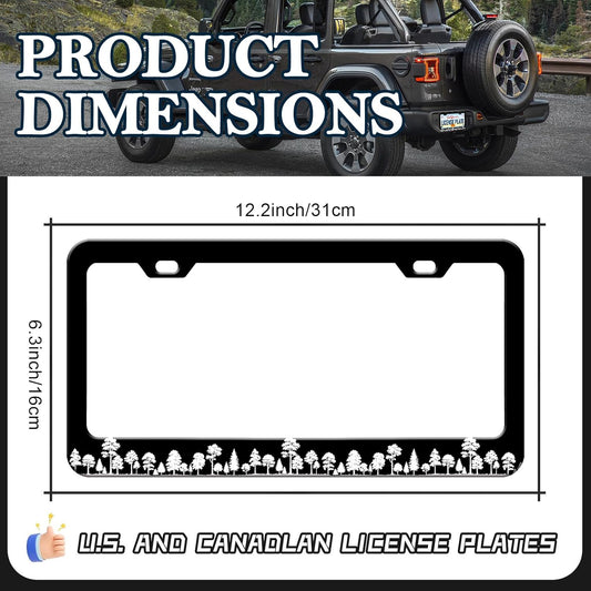 Forest License Plate Frames - 2 Pack Forest Tree Black Stainless Steel License Plate Holder,Rust-Proof Waterproof Car Decorative Tag Frame with Screws Fasteners Caps