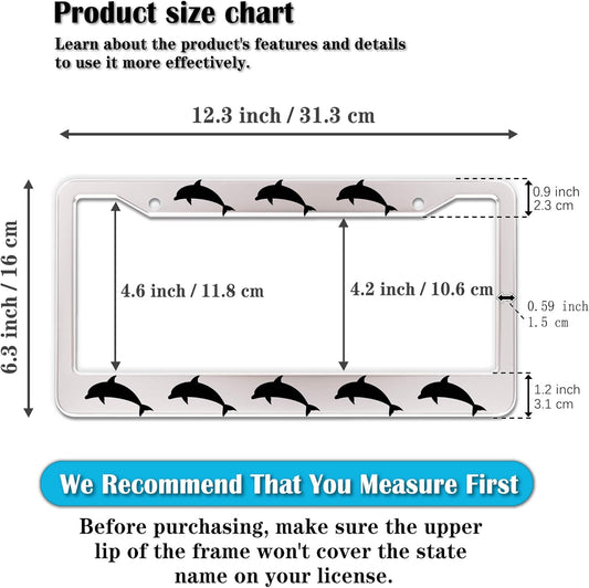 License Plate Frames for Women Black and White License Plate Protector for Men Dolphin Universal Aluminum Car Accessory 2 Pack with Screw Covers Set