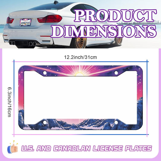 Sunset Mountain Anime License Plate Frames - 2 Pack Magic Colorful Stainless Steel License Plate Holder,Rust-Proof Waterproof Car Decorative Tag Frame with Screws Fasteners Caps