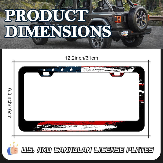 American Flag License Plate Frames - 2 Pack Vintage US Flag Stainless Steel License Plate Holder,Rust-Proof Waterproof Car Decorative Tag Frame with Screws Fasteners Caps