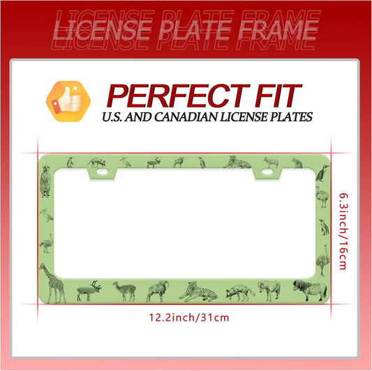 Personalized License Plate Frame Animals Stainless Steel Accessory Wolf Deer Horse Tiger Holder Funny Car Decorative 2 Holes Screws Fits Us Standard License Plates 12.2 X 6.3 in for Men Women