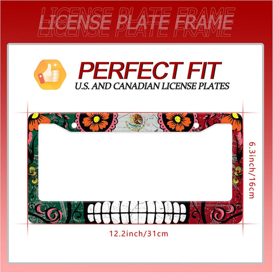 Personalized License Plate Frame Stainless Steel Mexico Flag Skull Funny Car License Plate Accessory Decorative 2 Holes and Screws Fits Us Standard License Plates Size: 12.2 X 6.3 Inch for Men Women