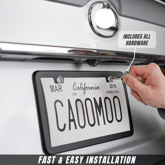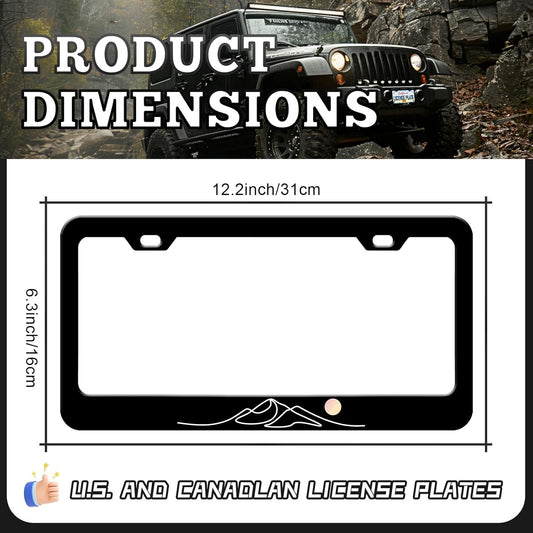 Moon Mountain License Plate Frames - 2 Pack Black Mountain Stainless Steel License Plate Holder,Rust-Proof Waterproof Car Decorative Tag Frame with Screws Fasteners Caps