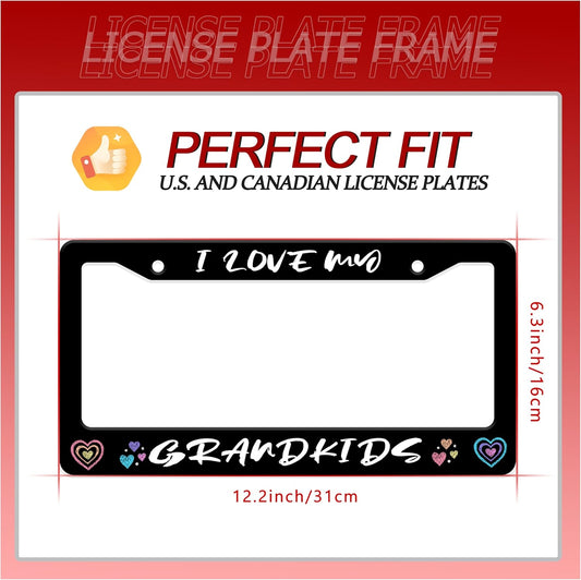 Personalized License Plate Frame I Love My Grandkids Stainless Steel Accessory Family License Plate Holder Funny Car Decorative 2 Holes Fits Us Standard License Plates 12.2 X 6.3 in for Men Women