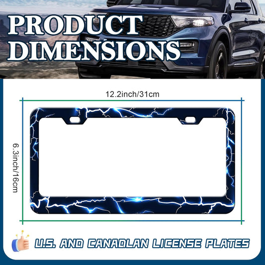 Blue Lightning License Plate Frames - 2 Pack Funny Thunder Stainless Steel License Plate Holder,Rust-Proof Waterproof Car Decorative Tag Frame with Screws Fasteners Caps