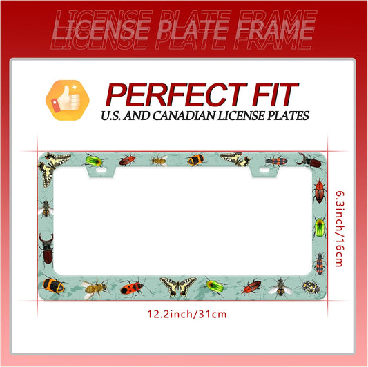 Personalized License Plate Frame Butterfly Moth Beetle Stainless Steel Accessory Animal License Plate Holder Funny Car Decorative 2 Holes Fits Us Standard License Plates 12.2 X 6.3 in for Men Women