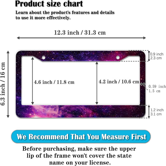 License Plate Frames Multicolor License Plate Cover Beautiful Galaxy Space Universal Aluminum Car Accessory 2 Pack with Screw Covers Set