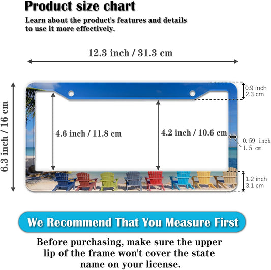Front License Plate Bracket Multicolor License Plate Frames Beach Ocean Universal Aluminum Car Accessory 2 Pack with Screw Covers Set