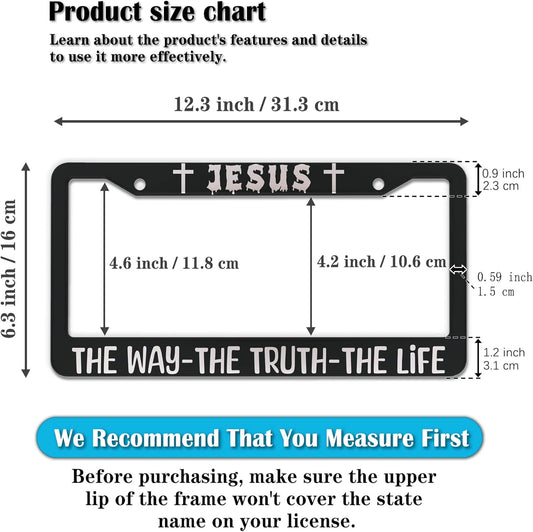 License Plate Frame Black and White Front License Plate Bracket Jesus The Way The Truth The Life Aluminum Metal Car Accessory 2 Pack with Screw Covers Set