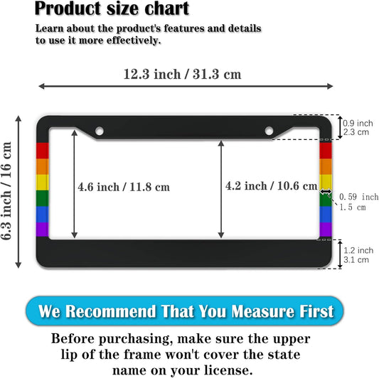 License Plate Frames Rainbow Automotive Exterior Accessories Gay Rainbow Strip Universal Aluminum Car Accessory 2 Pack with Screw Covers Set