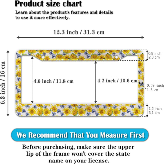 License Plate Cover Frame for Women Multicolor License Plate Frames for Men Sunflowers Aluminum Metal Car Accessory 2 Pack with Screw Covers Set