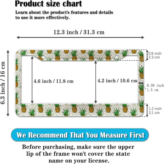 Car License Plate Frame Black Yellow License Plate Frames Yellow Pineapple Aluminum Metal Car Accessory 2 Pack with Screw Covers Set