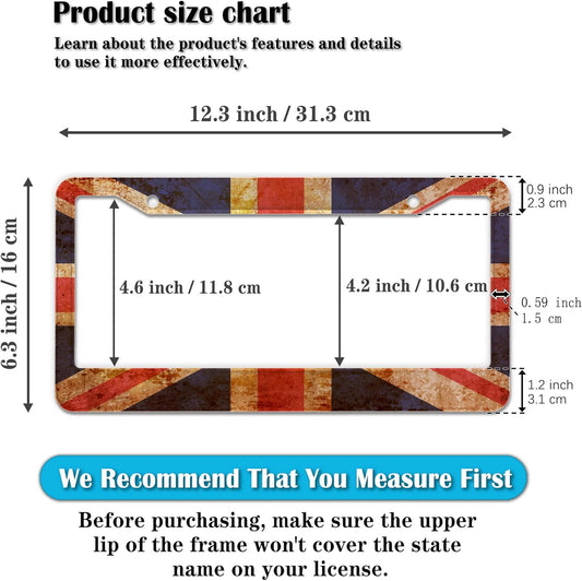 License Plate Frame Multicolor License Plate Protector Great Britain Vintage Old Flag Aluminum Metal Car Accessory 2 Pack with Screw Covers Set