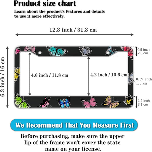 License Plate Frames for Women Multicolor License Plate Frame Holder for Men Butterfly Aluminum Metal Car Accessory 2 Pack with Screw Covers Set