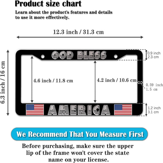 Car Plate Frame for Men Black and White License Plate Frames for Women God Bless America Aluminum Metal Car Accessory 2 Pack with Screw Covers Set