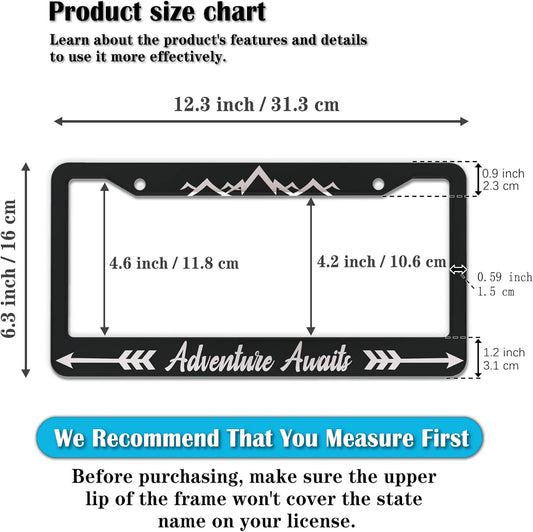 License Plate Frames Black and White Custom License Plate Frame Adventure Awaits Aluminum Metal Car Accessory 2 Pack with Screw Covers Set