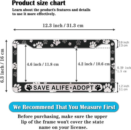 License Plate Holder Black and White License Plate Frames Save a Life Adopt Aluminum Metal Car Accessory 2 Pack with Screw Covers Set