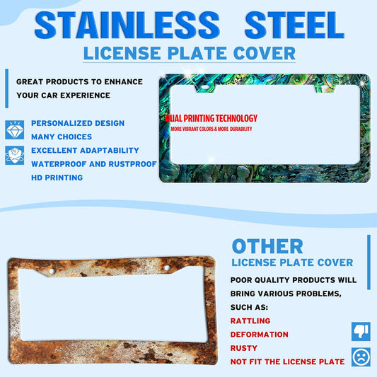 Faux Abalone License Plate Frame Funny Stainless Steel License Plate Holder for Front or Rear Car Tags for Car Decoration Accessories Rust-Proof with Screws 6.3 X 12.2 in for Women Men