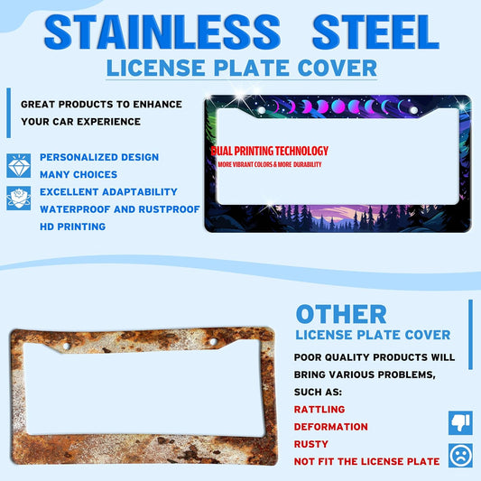 Moon Phases Aurora Forest License Plate Frame Night Sky Stainless Steel License Plate Holder for Front or Rear Car Tags Funny for Car Decoration Accessories with Screws 6.3 X 12.2 in for Women Men