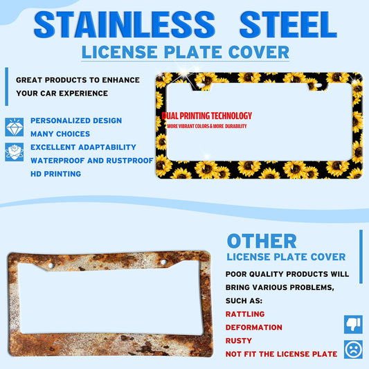 Sunflowers License Plate Frame Yellow Flowers Stainless Steel License Plate Holder for Front or Rear Car Tags Funny for Car Decoration Accessories with Screws 6.3 X 12.2 in for Women Men