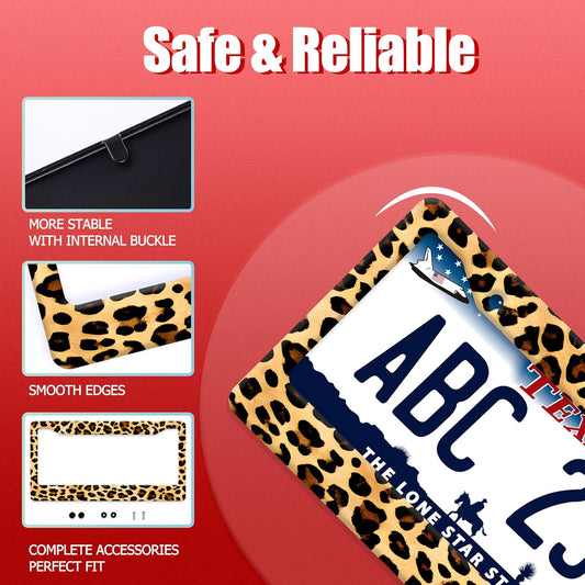 License Plate Frames Leopard Print Fun License Plate Frame Protector Cute Cheetah Texture Aluminum Metal Car Accessory 2 Pack with Screw Covers Set