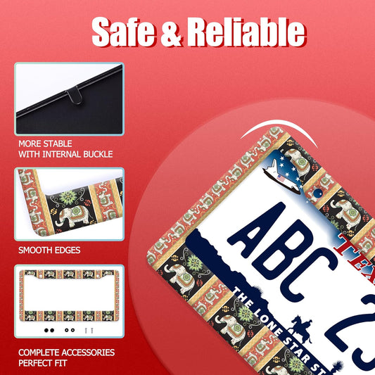 Tribal Elephant License Plate Frame Boho Animal License Plate Frames Funny Auto Accessories Bracket Stainless Steel License Plate Holder 6x12 Inch