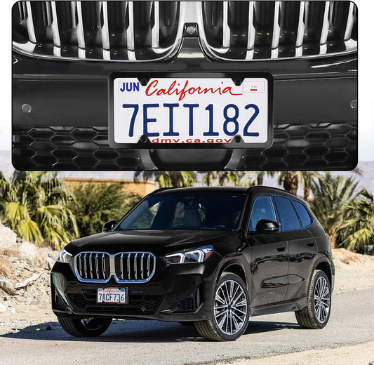 2 Pack Black License Plate Frame, Black Aluminum License Plate Cover, Matte License Plate Front and Rear 2 Packs. (2 Holes), Come with Screw Cap, Screw,Washer