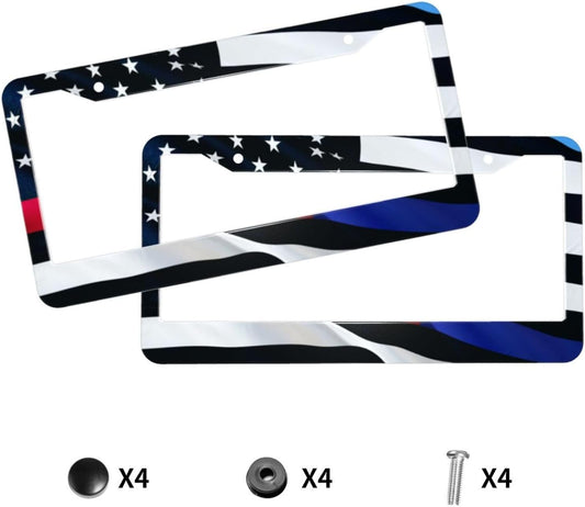 OKLPF Premium American Flag License Plate Frame, Red and Blue License Plate Cover, Aluminum Matte License Plate Front and Rear 2 Packs. (2 Holes), Come with Screw Cap, Screw,Washer