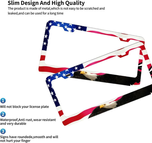 Patriotic License Plate Frame,American Flag License Plate Frame,Flag License Plate Frame US Car Tag Frames Holders Covers Stainless Aluminum 2 Pack 2 Holes Car Accessories