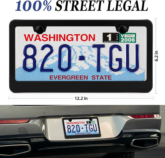 LivTee 4 Holes Stainless Steel License Plate Frames, 2 PCS Car Licence Plate Covers, Automotive Exterior Accessories Slim Design with Bolts Washer Caps for US Vehicles, Black