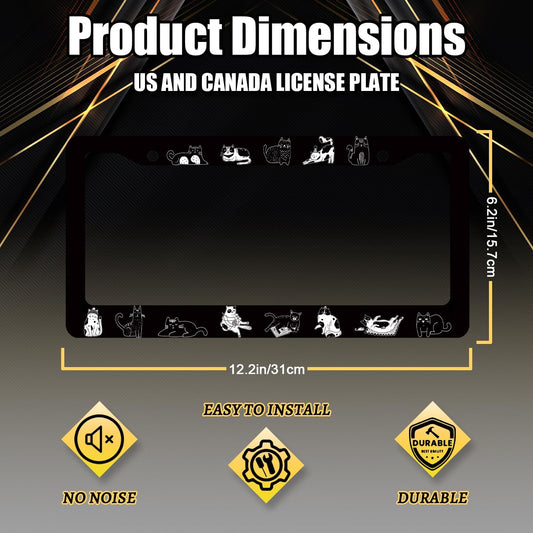 Cats License Plate Frame Cute Animal Cat License Plate Holder Stainless Steel Funny Design Compatible with Standard License Plate for USA Canada 12.3" x 6.3" with 2 Screws