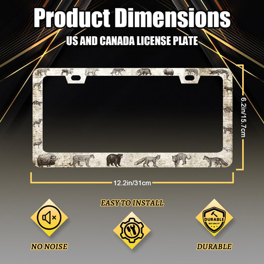 Animals License Plate Frame Bear Deer Horse Tiger License Plate Holder Stainless Steel Funny Design with 2 Holes and Screws 12.3" x 6.3"