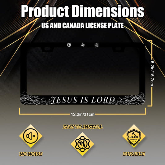 Jesus is Lord License Plate Frame Christian License Plate Holder Stainless Steel Funny Design with 2 Holes and Screws 12.3" x 6.3"