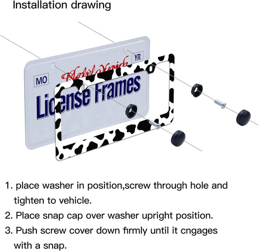 Brown White Cows Print License Plate Frame Animals License Plate Holder Stainless Steel Funny Design with 2 Holes and Screws 12.3" x 6.3"