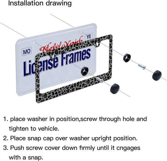 Stainless Steel Black Cheetah License Plate Holder Leopard Print License Plate Frame Cheetah Leopard Black Car License Plate Covers tag Frame for Women 12.3" X 6.3"