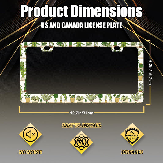Cute Cactus License Plate Frame Tropical License Plate Holder Stainless Steel Funny Design Compatible with Standard License Plate for USA Canada 12.3" x 6.3" with 2 Screws