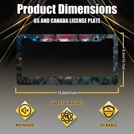 Vintage American Flag License Plate Frame USA Flag License Plate Holder Stainless Steel Funny Design with 2 Holes and Screws 12.3" x 6.3"