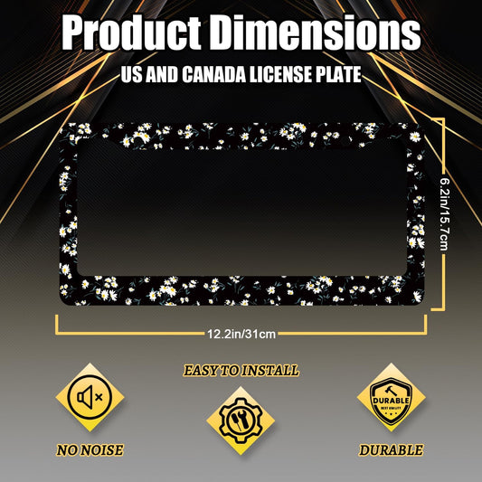Daisy License Plate Frame Watercolor Daisies Flower License Plate Holder Stainless Steel Funny Design with 2 Holes and Screws 12.3" x 6.3"