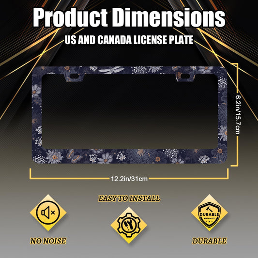 Blue Folk Art Flowers License Plate Frame Colorful Floral License Plate Holder Stainless Steel Funny Design with 2 Holes and Screws 12.3" x 6.3"