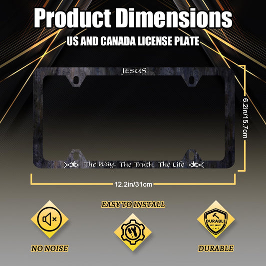 Jesus The Way The Truth The Life License Plate Frame Christian License Plate Holder Stainless Steel Funny Design Compatible with Standard License Plate for USA Canada 12.3" x 6.3"